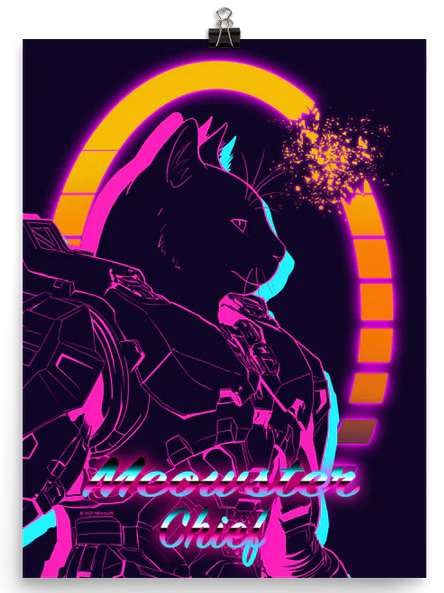 In honor of National Cat Day, which is a real thing, we made this print based on "popular" fan "theories" about Master Chief's true identity, which may or may not be true. (They aren't true.) ((Or are they?))
