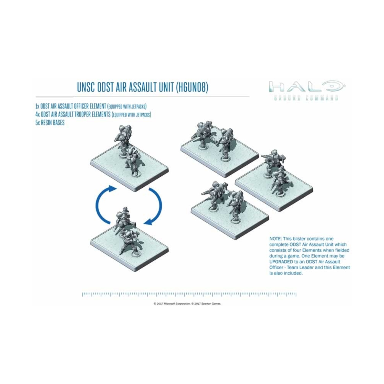 ActionClix® is a 3D tabletop miniature game that features highly detailed sculpts with exciting game play. The innovative Halo™ ActionClix® Clix dial tracks a unit's health and vital combat stats like attack, damage, speed, and defense. For each 1 damage dealt to your Halo unit during battle, you click its dial once clockwise. As the dial clicks down, the unit's combat abilities evolve. When the dial goes black, the unit is eliminated and must re-spawn at one of the spawn points on the map. Halo is a game about firepower, and the over 80 figures, vehicles, and 3-D objects in Halo ActionClix allow incredible combinations of weaponry from the Halo universe. The unique "weapon swap" game mechanic allows you to give a unit on the play map a stronger weapon. Halo ActionClix also features character cards for each unit, which describes the special abilities that unit possess. You can also upgrade your units by eliminating your opponent's units or controlling vital areas on the map.